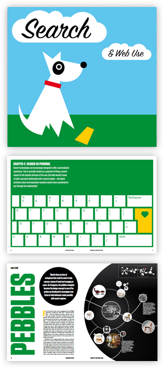 Issue 3 of our magazine is focussed on the theme of Search & Web Use. We’ve tried to wrap up over 5 years of research and design work in this area to talk about the way we search online, and how we spend out time on the web. Are there ways of thinking about search beyond worries about the speed and relevancy of results? In this issue we describe 5 different ways in which people spend their time online – Purposefully, Opportunistically, to Orient themselves, as a form of Respite and finally simply to Lean-Back. With this context, we present a number of different prototypes and ideas for thinking about our lives online, that we hope will inspire your own work.