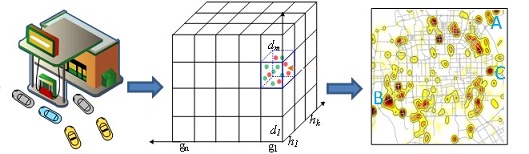 Abstract: An urban black hole is a subgraph (or a region) that has the overall inflow greater than the overall outflow by a threshold, while a volcano is a subgraph with the overall outflow greater than the overall inflow by a threshold. The online detection of black holes/volcanos can timely reflect anomalous events, such as disasters, catastrophic accidents, and therefore help keep public safety. The patterns of black holes/volcanos and the relations between them reveal human mobility patterns in a city, thus help formulate a better city planning or improve a system’s operation efficiency.