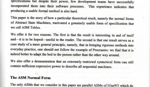 This paper is the story of how a particular theoretical result, namely the normal forms of Abstract State Machines, motivated a genuinely usable form of specification that we call ASM Tables.