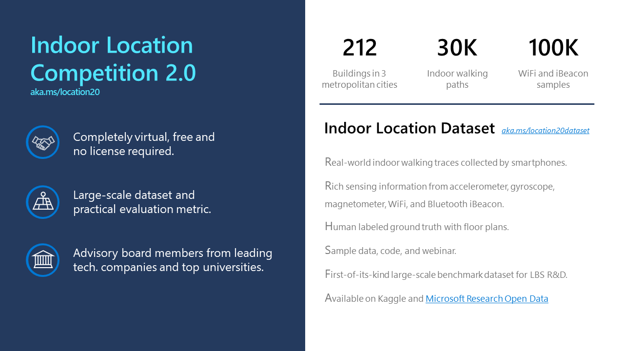 Microsoft sponsored and co-organized Indoor Location Competition 2.0 in 2021. 1446 contestants from more than 60 countries making up 1170 teams participated in this unique global event. In this competition, a first-of-its-kind large-scale indoor location benchmark dataset was released. It consists of dense indoor signatures of WiFi, geomagnetic field, iBeacons etc., as well as ground truth (waypoint) (locations) collected by Android smartphones from hundreds of buildings in Chinese cities. We hope the dataset will be of great value to research and development of indoor space including localization and navigation. A detailed description of the format of trace file is shown, along with other details and processing scripts, on GitHub.