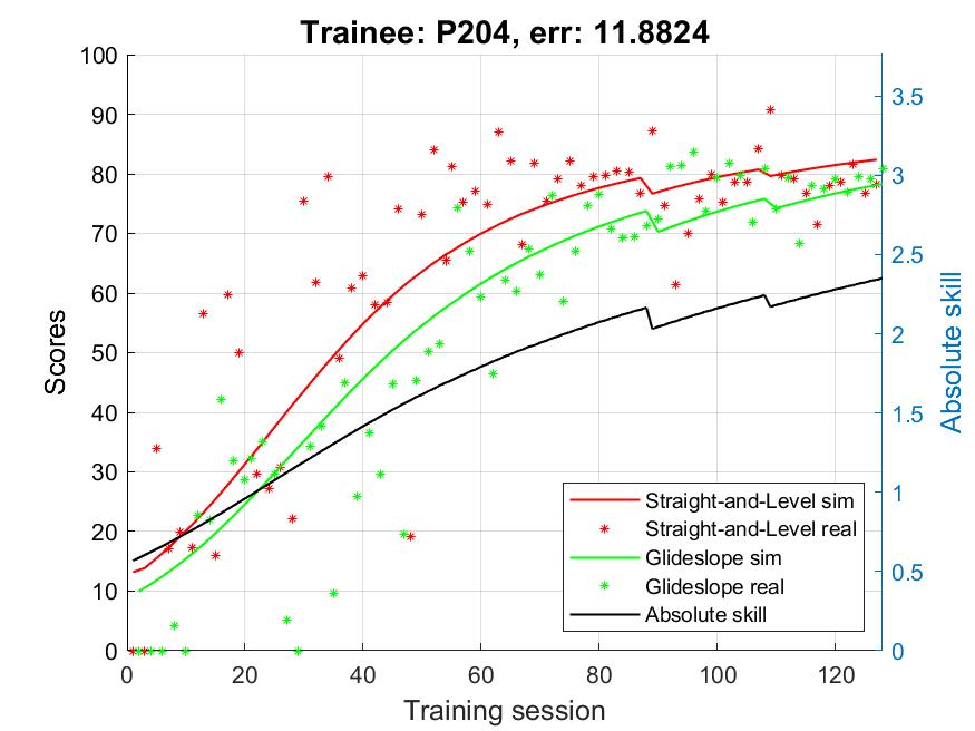 In this paper we propose a parametric model of the training process which includes the skill increase and retention during training. The model is verified with the data from 22 subjects performing tasks in a flight simulator. The resulting computational model estimates the behavioral score.