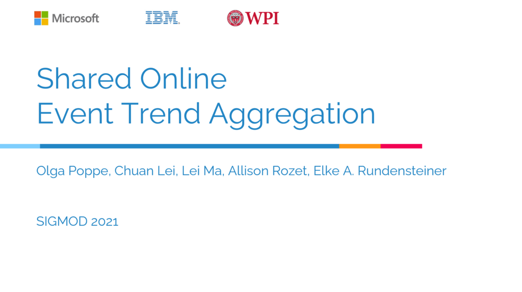 To Share, or not to Share Online Event Trend Aggregation Over Bursty Event Streams, SIGMOD 2021, 5 mins