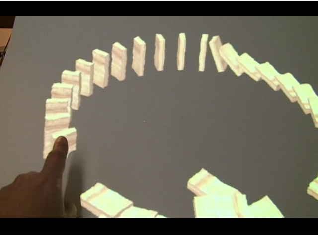 In MirageTable, a 3D stereoscopic projector projects content directly on top of the curved screen. The information is captured by the Kinect camera, which also tracks the user’s gaze. This enables presentation of correct perspective…