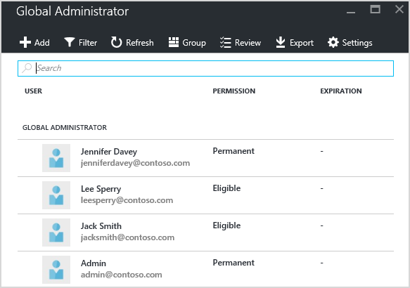 Figure 3. Protect administrative roles by setting users to “Eligible.”