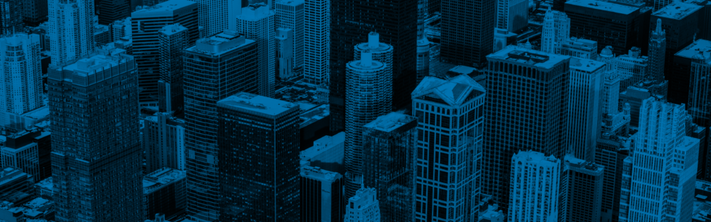 A shot of a city skyline from above.