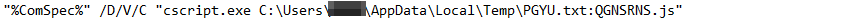 The BAT command drops a single-line JavaScript file to the Pictures folder and invokes explorer.exe to run the JavaScript file.