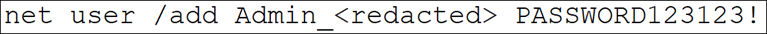 In one suspected DEV-0832 intrusion, Microsoft observed an operator create accounts that, based on the naming convention, were designed to blend in as admin accounts and allow persistence without malware, as shown in the following command: