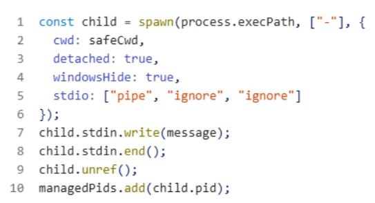 Regardless of the initial execution path, whether opening the project in Visual Studio Code, running the development server, or starting the application backend, all three mechanisms lead to the same Stage 1 payload. Stage 1 functions as a lightweight registrar and bootstrap channel.