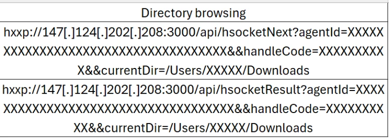 Figure 10Stage 2 directory browsing observed in telemetry using paired enumeration endpoints (/api/hsocketNext and /api/hsocketResult).