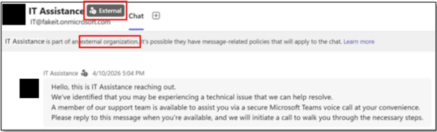 By abusing enterprise collaboration workflows instead of traditional email based phishing channels, attackers may initiate contact through applications such as Microsoft Teams in a way that appears consistent with routine IT support interactions.