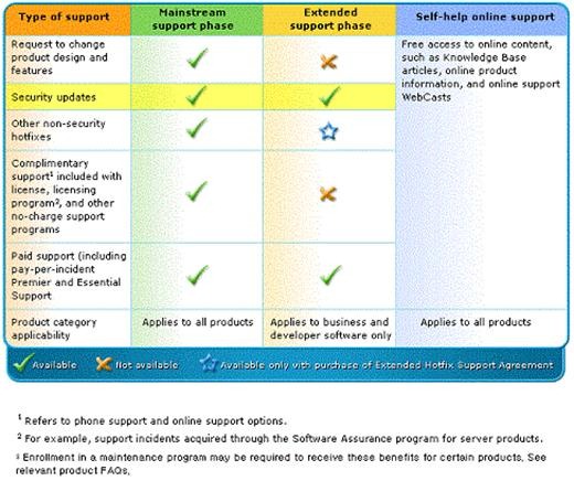 · 10 years of support (5 years Mainstream Support and 5 years Extended Support) at the supported service pack level for Business and Developer products