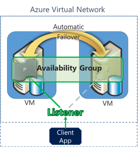 AlwaysOn Availability Groups, released in SQL Server 2012 and enhanced in SQL Server 2014, guarantee high availability for mission-critical workloads. Last year we started supporting Availability Groups on Azure Infrastructure Services. The main components of such a configuration are two SQL Server replicas (a primary and a secondary), and a listener (DNS name). The replicas are configured for automatic failover, and each replica is contained on a distinct Virtual Machine. The listener is a DNS name that client applications can use in their connection string to connect to the current primary replica. The image below shows a depiction of this setup.