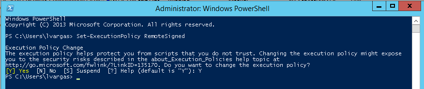 5) Change the Powershell Execution Policy to allow the execution of signed scripts