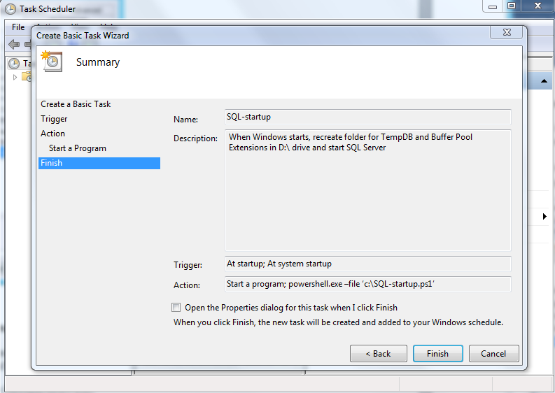 • Arguments:                  –file ‘C:\SQL-startup.ps1’