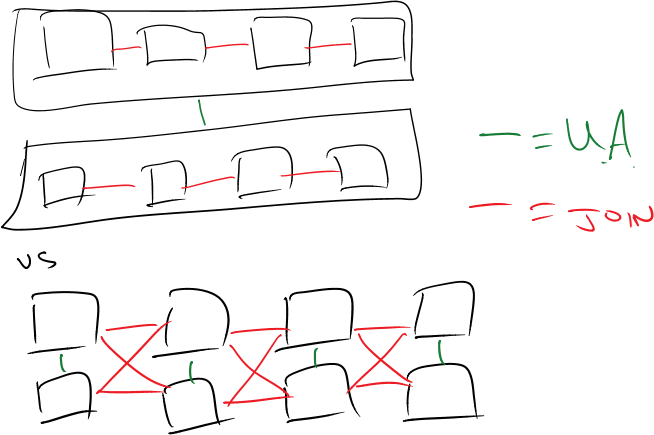 This may seem more complex – it’s certainly longer – but this is the original, preferred version of the join. This is a powerful rewrite of the query.