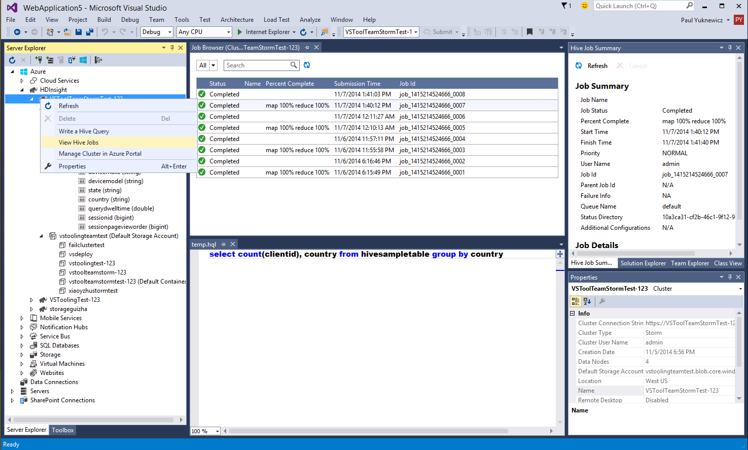 Azure HDInsight Adds Deeper Tooling Experience in Visual Studio