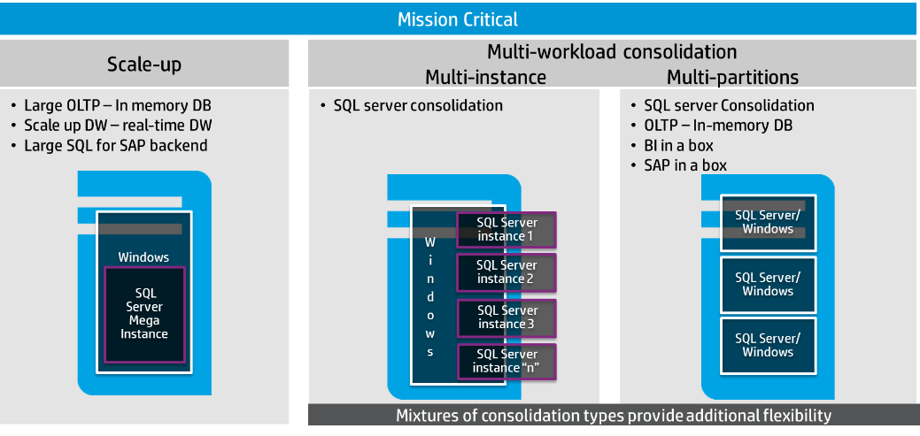 HP recently announced (see HP Announcement) the certification of the powerful scale-up Superdome X server. It is purposefully designed to support the most demanding, critical workloads for Windows Server and support for SQL Server as it is certified to run on Windows Server and provide support for SQL Server.