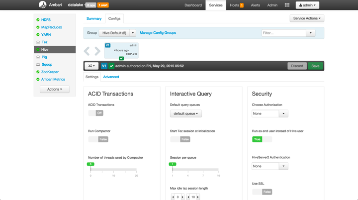 Of course, there is so much more that I didn’t cover here which is also part of HDP 2.3!  There has been meaningful innovation within Hive for supporting Union within queries and using interval types in expressions, additional improvements for HBase, Phoenix, and more.  But, for now, I’ll leave those for subsequent blog posts that will highlight them all in more detail.