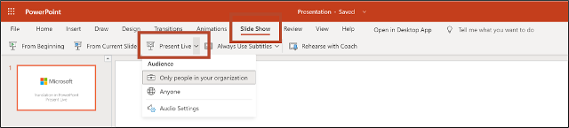 Presentazioni live è attualmente disponibile solo per PowerPoint per il Web. Per utilizzare la funzione, è necessario salvare la presentazione sul Web.