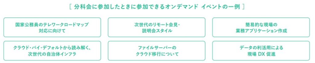 以下では、新たに新設された「公共・行政関連分科会」で現在予定されているイベント・およびご登録後にオンデマンド視聴が可能となるイベントについて、お知らせいたします。