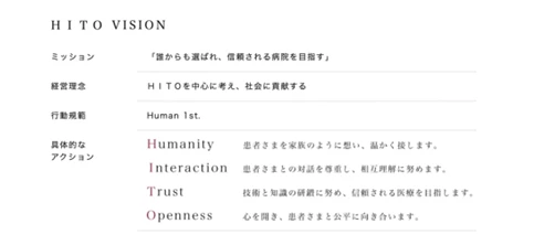 「HITOを中心に考え、社会に貢献する」ことが当院の経営理念です。