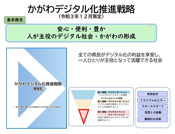 藤澤氏はこうした香川県の取り組みについて、国が 2021 年 5 月に定めた「デジタル社会形成基本法」、ならびにデジタル庁による「デジタル社会の実現に向けた重点計画」と軌を一にするものと語ります。