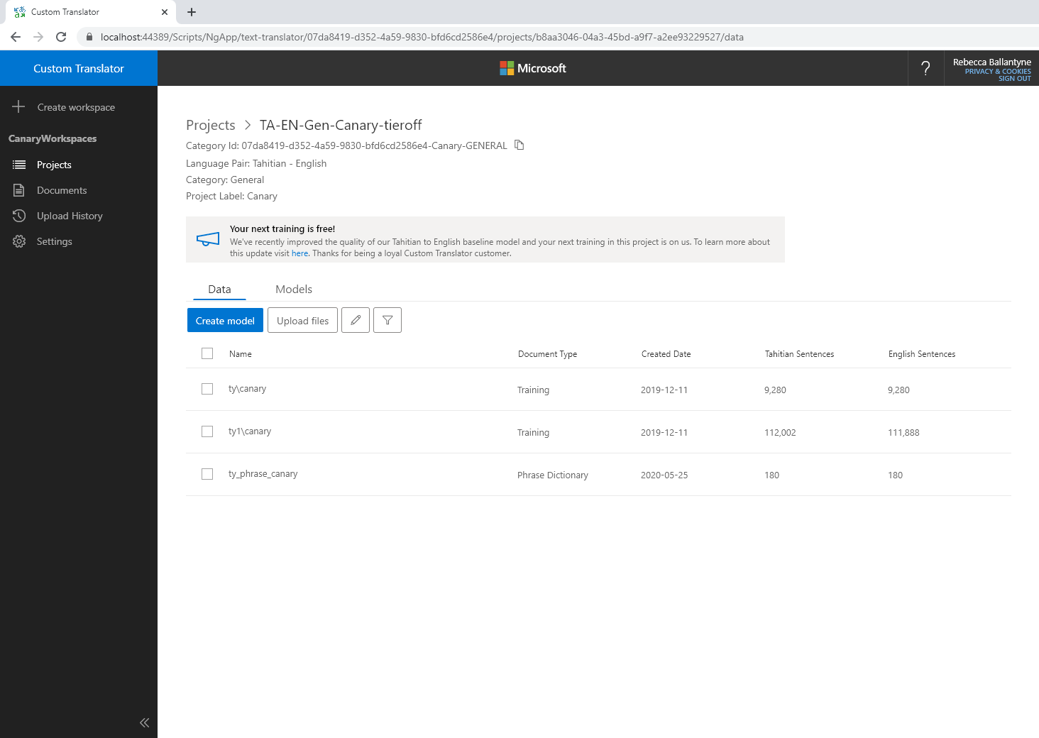 Šiandien Custom Translator baigė visą V2 platformos atnaujinimą, kad būtų užtikrintas dar didesnis vertimo kokybės padidėjimas nei anksčiau. Dabar klientai gali kurti pasirinktinius modelius su visais dokumentų tipais (mokymas, testavimas, derinimas, frazių žodynas ir sakinio žodynas) naudodami viso teksto dokumentus, pvz., "Office" dokumentus, PDF rinkmenas, HTML ir paprastąjį tekstą.